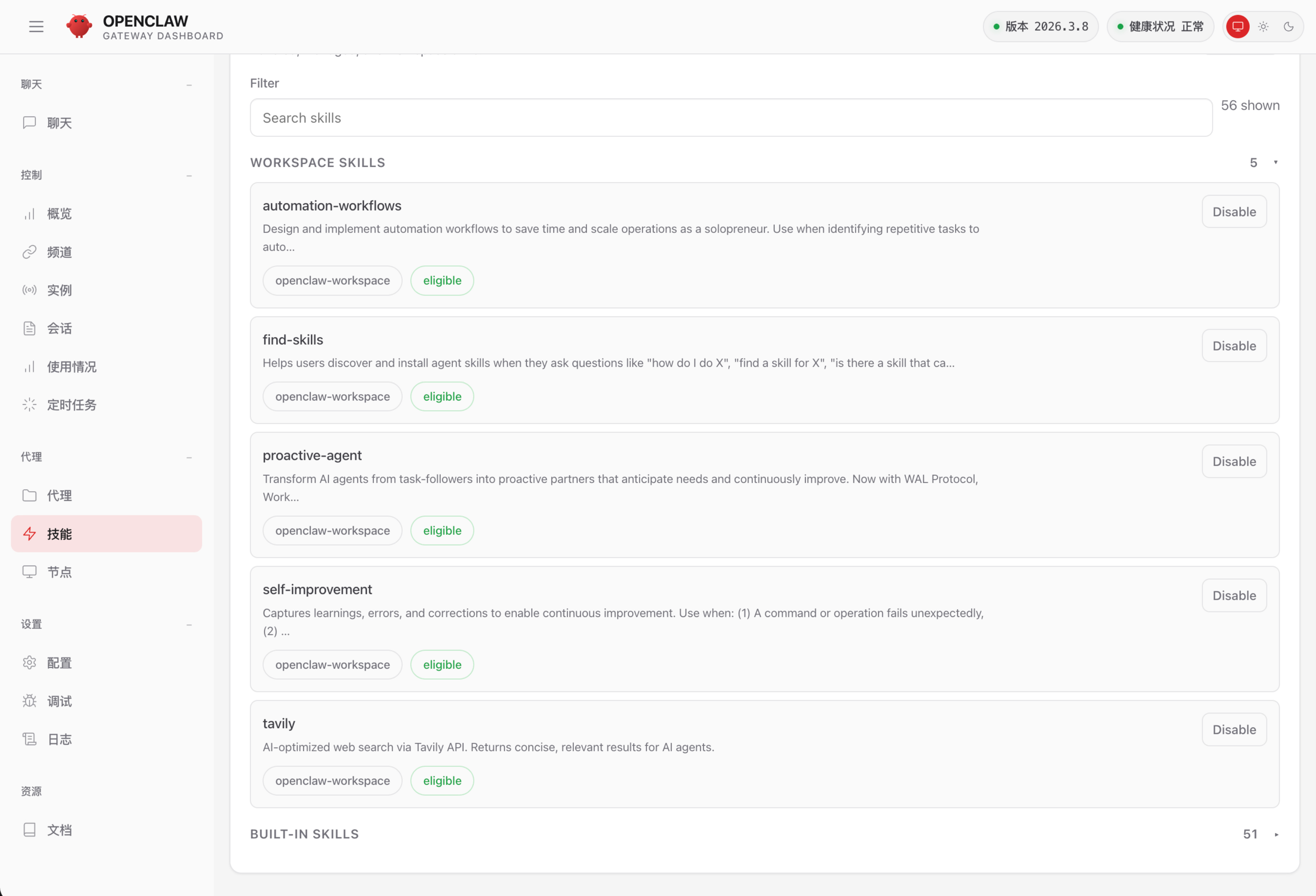 装好了,机器人我叫这贾维斯,也为贾维斯安装好了一些比较爆的 Skills,后面看看有什么合适的应用了再更新