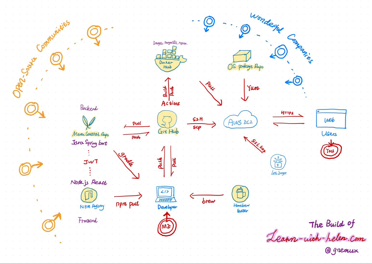 在这一步,我给自己设定的目标是要用 Github 托管代码,并且使用 Github Actions 来管理 CI/CD 流程。并且希望是使用容器化部署的方案完成自动集成: