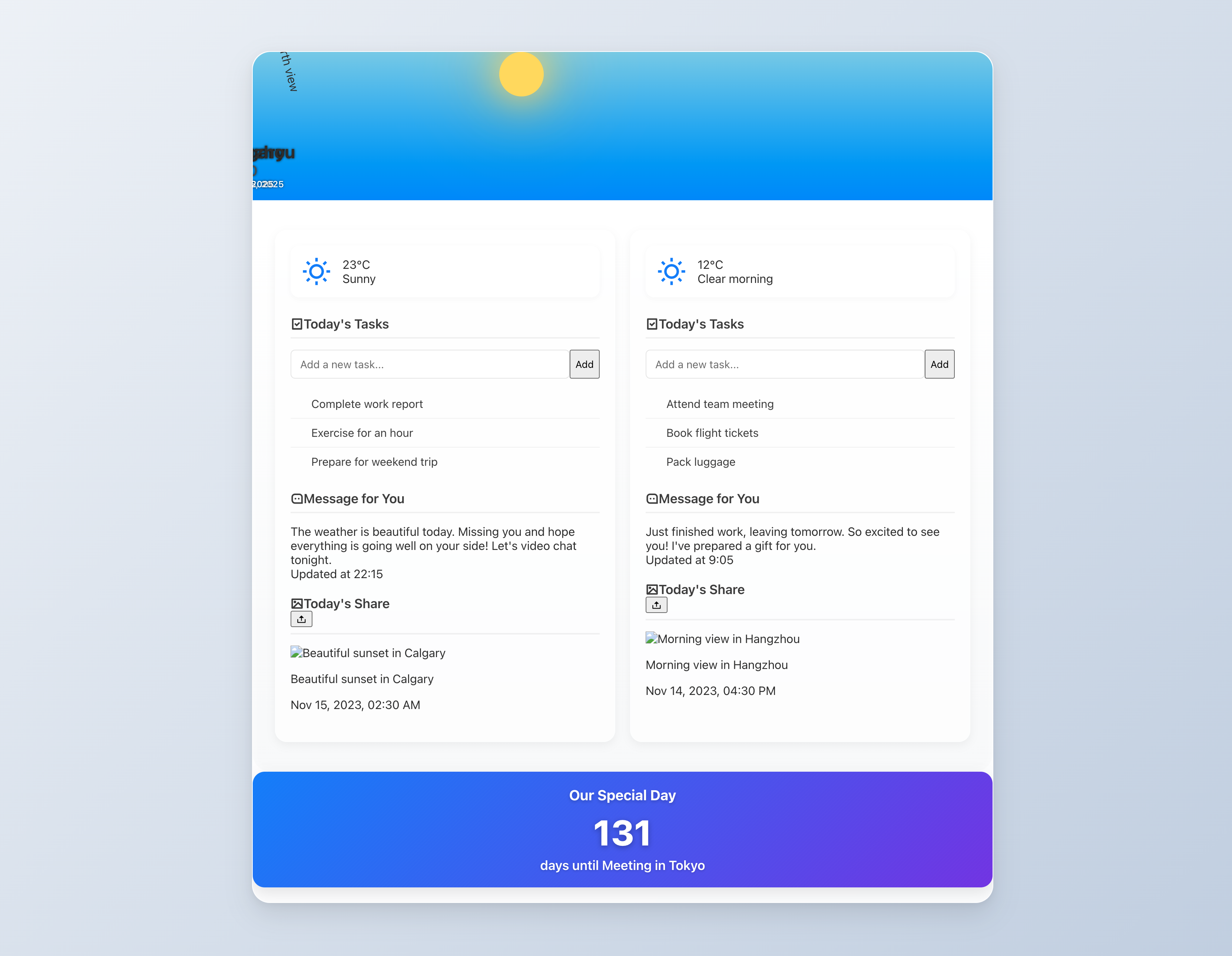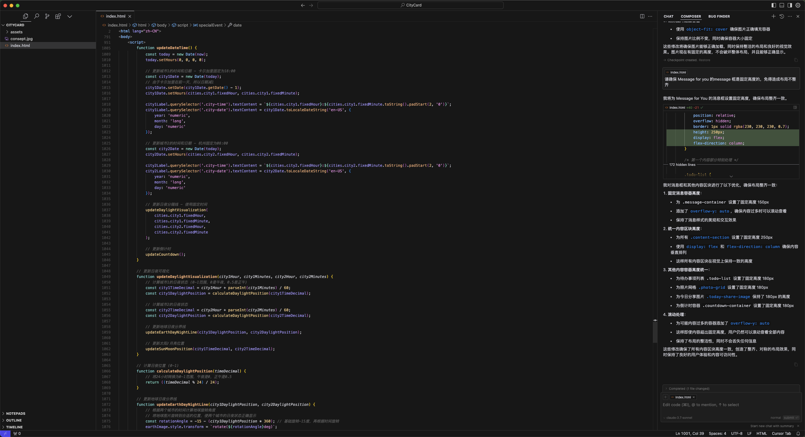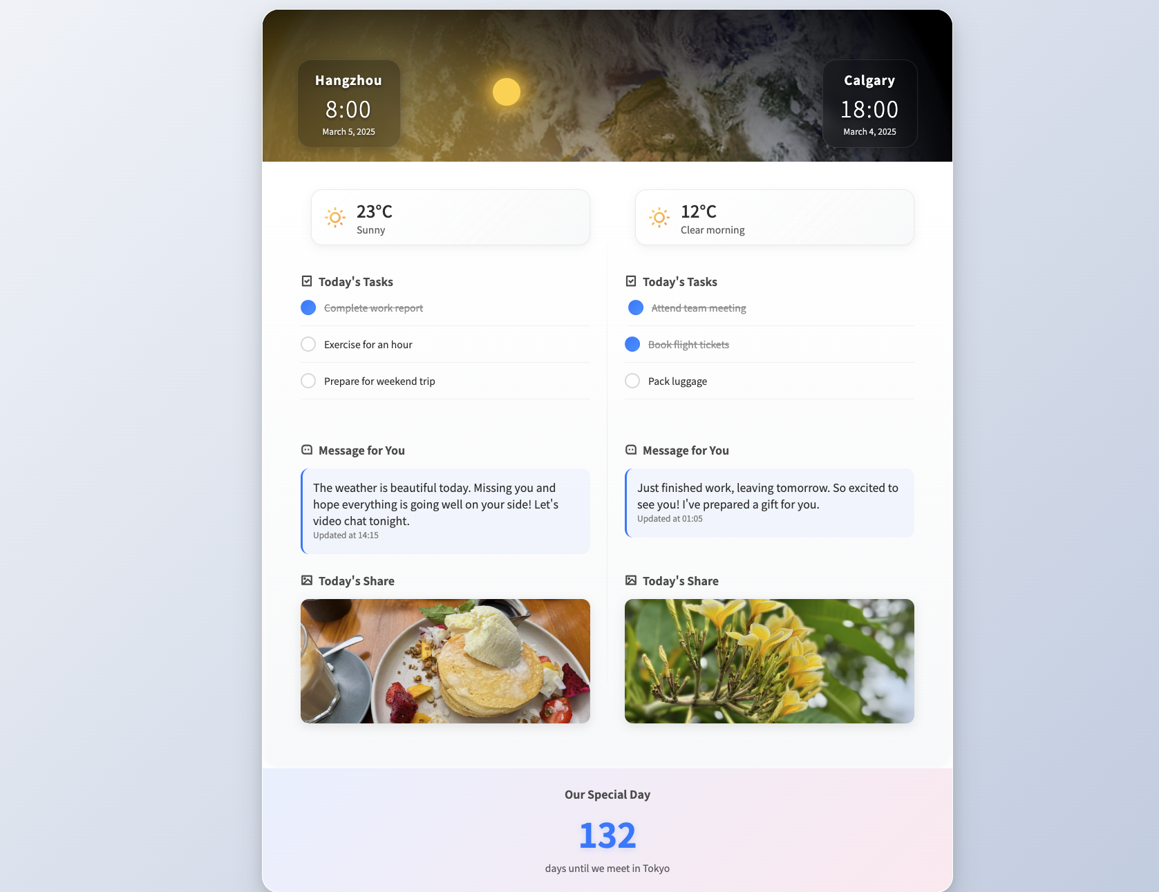 我尝试了以下提示词,并手绘了一张概念图手稿,希望 Claude 可以结合我的要求和手稿进行生成一个我有在脑海中构思过,来原于生活的关于两个城市互动的卡片应用生成。