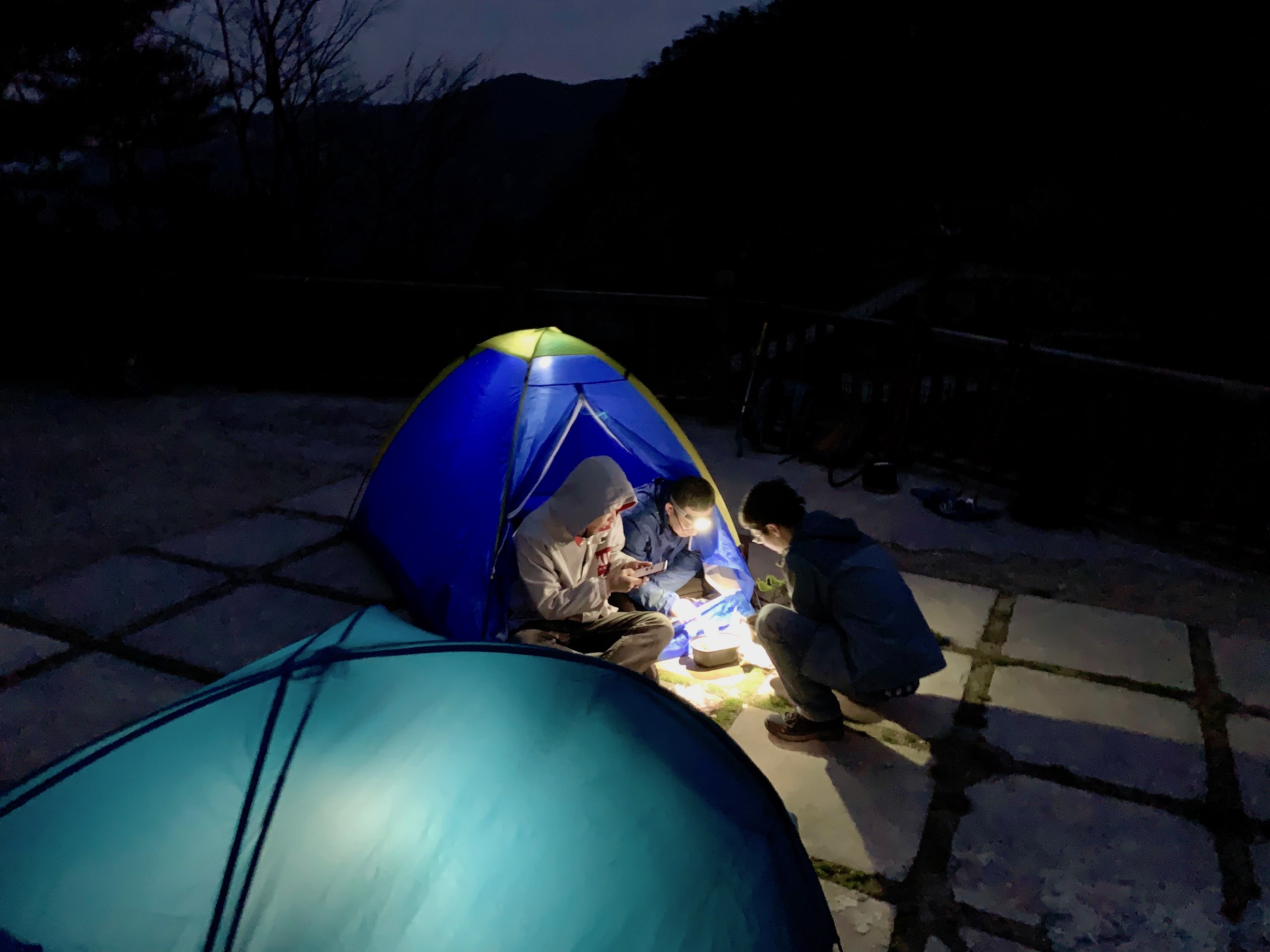 我们选了一块露台便开始搭起营地,然后就是一如既往的在满天星辰下的,围炉畅谈,聊一聊生活中的惆怅,敬一杯正在逝去的青春。