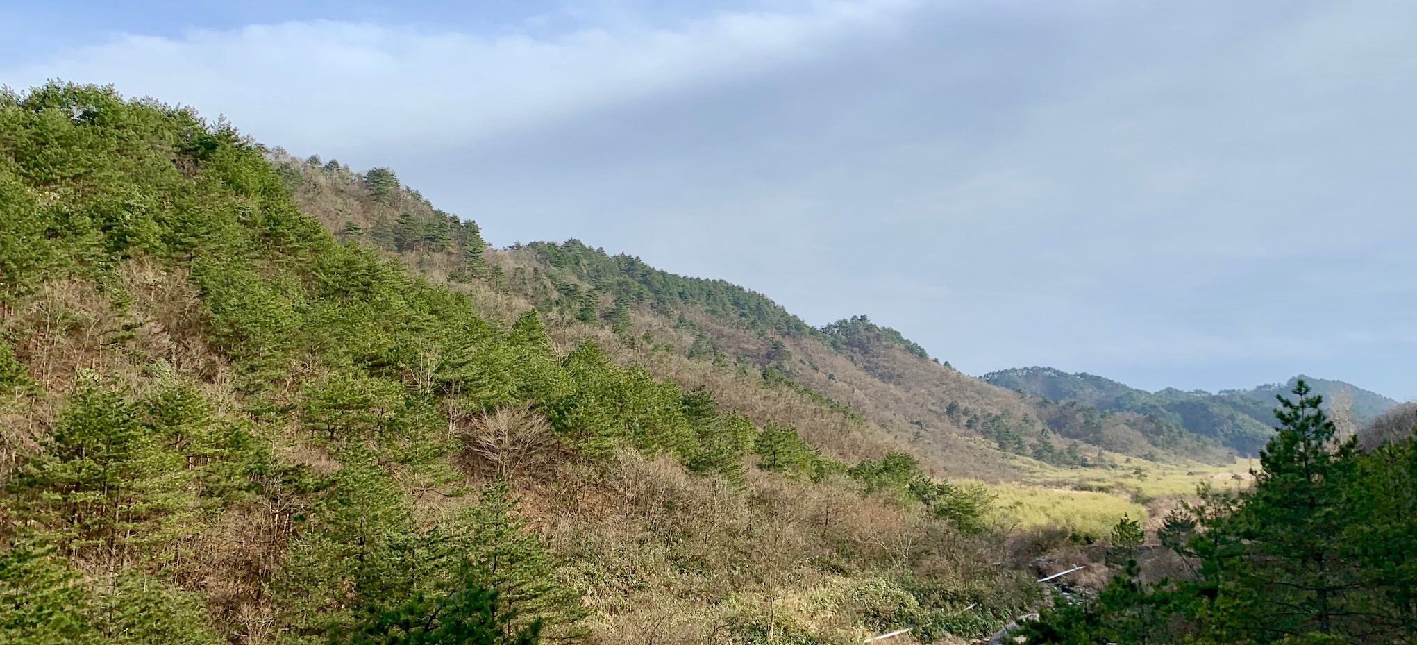 上山的时候都知道目的是所谓的千亩草甸,快到达的时候才开始思考,为何会有所谓的草甸存在于超过1000米的山顶..这是一种怎样的景观。直到我们到达了山顶,才看到还真是有一大片郁郁葱葱长满茅草的谷地在山顶向前广袤地展开。