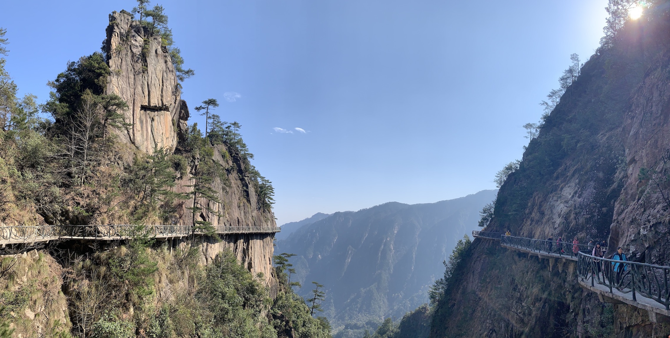 起身后,我们选择了号称浙西最美的悬空栈道,在一段险峻的奇景后,我们选择了超级滑梯滑下了山,从来没有想象过用这种方式下山..还是有些刺激的..