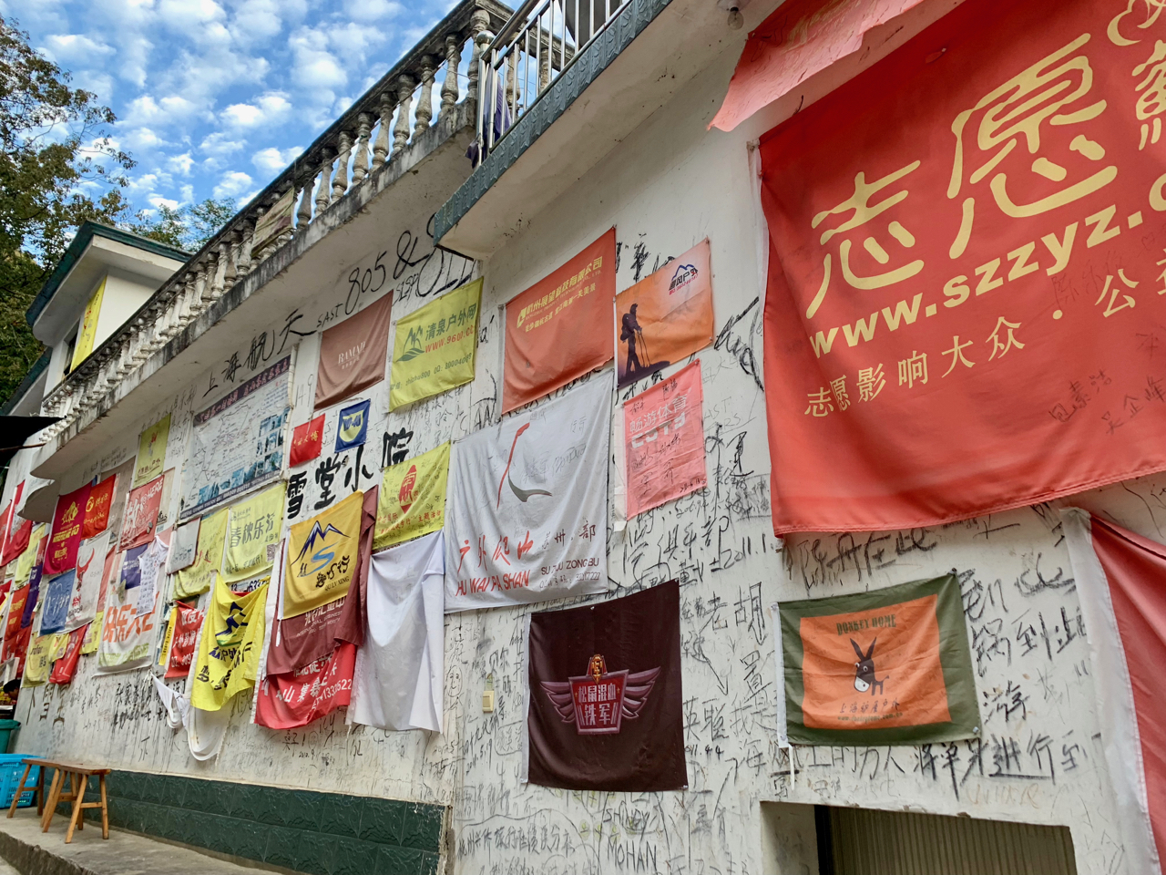 直到快到路徒中的最高顶蓝天凹时,阶梯再一次变得陡峭,地势随着我们的攀登上升了一个高度,在经过一个颇有氛围的青年旅舍后,我们终于在夜幕中到达露营地蓝天凹