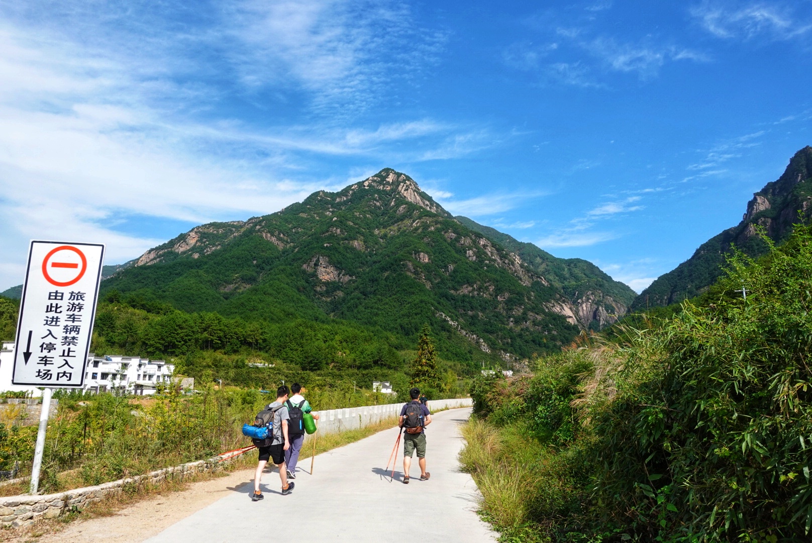 于是适逢长假,交通拥堵如约出现,好在我们合理选择高速与国道交替的路线,躲过大部分拥堵,14:00左右到达安徽绩绩溪,在一处农家乐吃完午餐后,我们径直到达了入口。背上行囊,展开登山杖,与XX道完别,我们就开始上路了