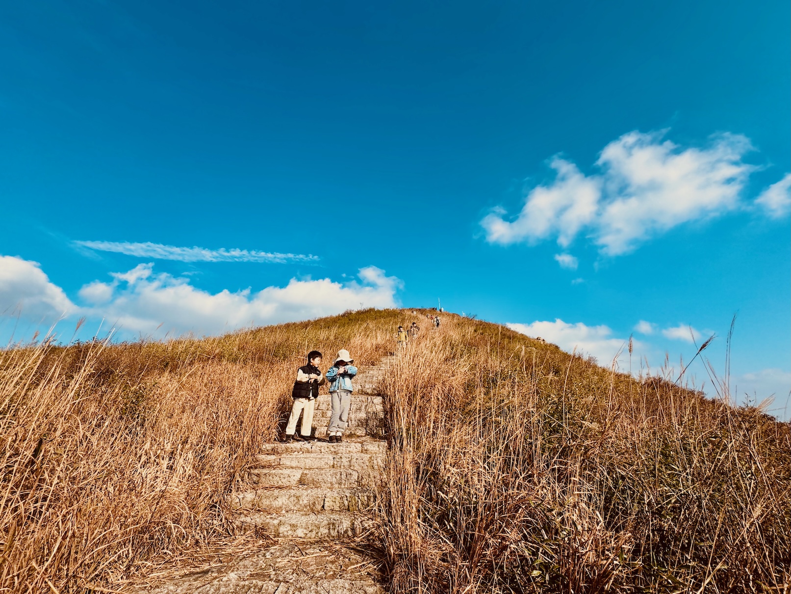 展开帐篷后,天色还早,我们开始去往山顶,并延着山脊往前走了一段,有芦苇,有蓝天,有远处的山峦,令人心旷神怡。