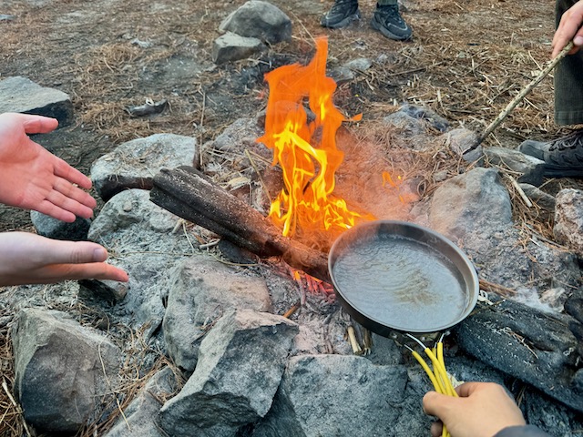 经过5个小时的跌跌撞撞,五人终于回到营地,由于身处谷地,此时气温已经快降至冰点,第一次我们在营地生了一把篝火,围着火享用完了晚餐,在星空下闲谈。