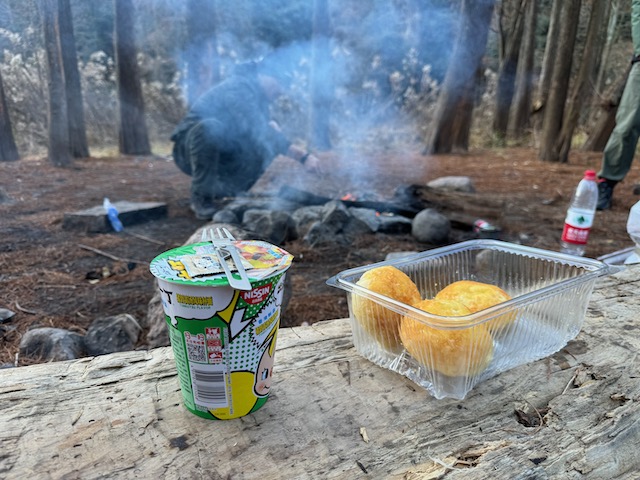 第二天一早,由于从谷地的树林里醒来,无法看日出了,温度还没有开始升高,于是又升了团火,把早饭加热一下,收拾行囊准备走出山谷。