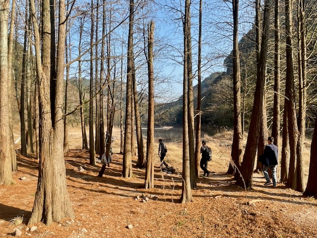 到达营地: 徒步半小时到达卖柴岙水库边的红杉林