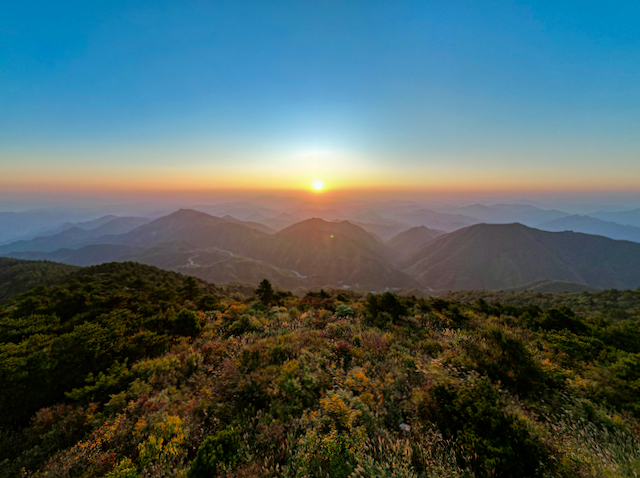 于是二话不说,就开始往前上山,虽然不是以往的野路,但是沿途的山峦风光还是令人赏心悦目,由于一路几乎无人,我们边走边聊着天,傍晚时分就来到了山顶的气象站,相对轻松。