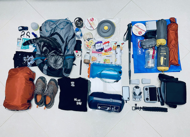 在山顶有幸邂逅了金色的日落,找到了一个僻静的平台,在满天繁星下展开帐篷,开火吃饭。